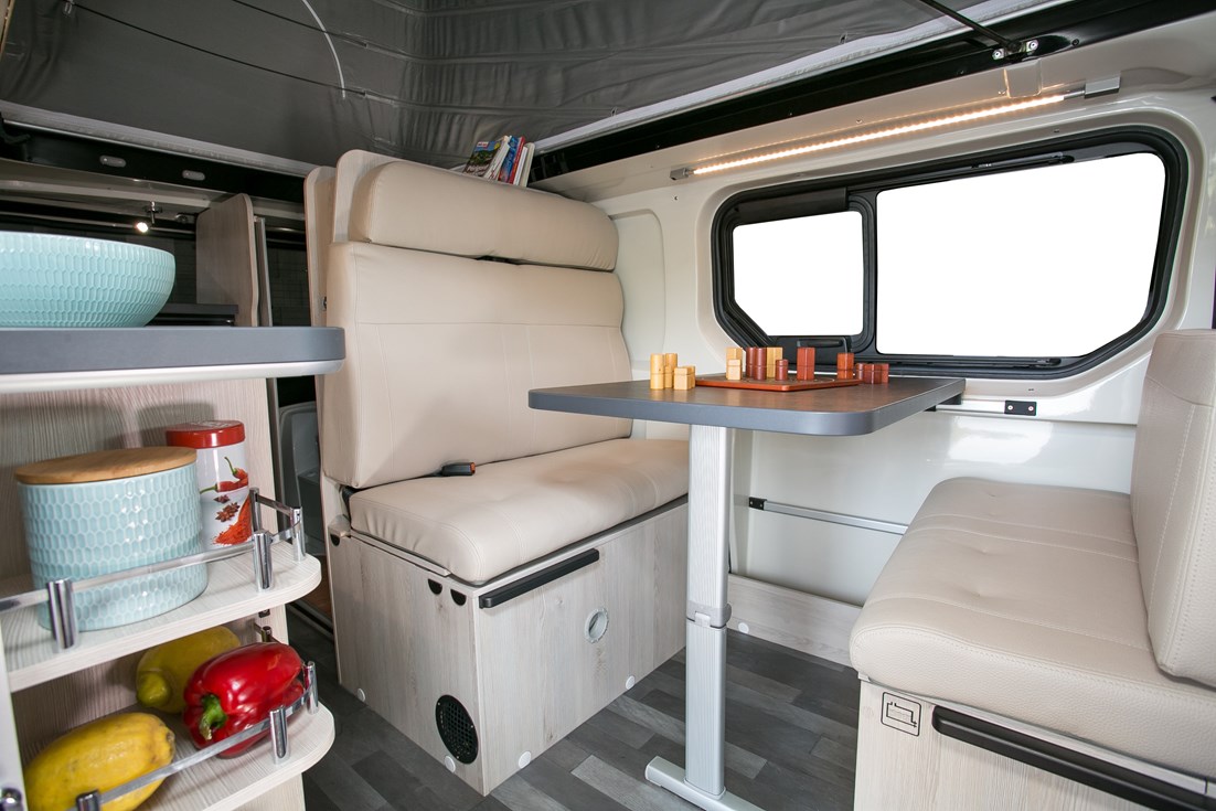 Grazie al tavolo della dinette facilmente asportabile è possibile mangiare fuori quando e dove si desideri usufruendo dell’ancoraggio laterale esterno.